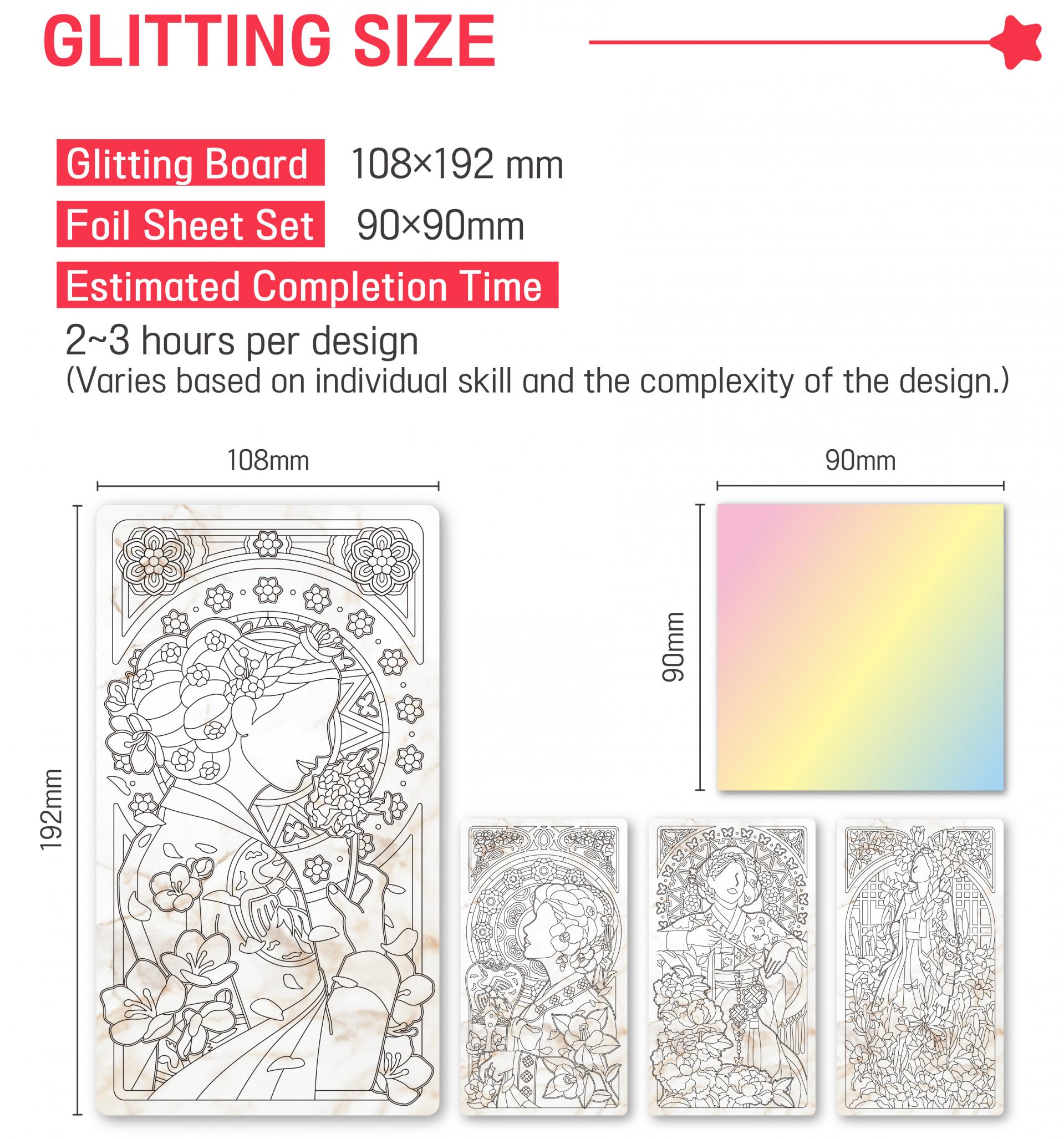 Pressing the hologram foil too hard with fingernails may leave nail marks on the Glitting board.